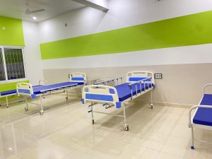 Moderne Krankenhausbetten anstelle einfacher Holzbetten