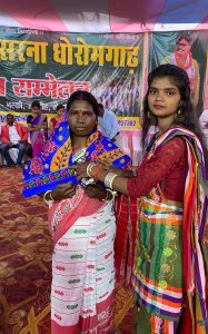 Anlässlich des Sarhul-Festes spendet die Johar Gesellschaft jedes Jahr traditionelle Saris für Frauen sowie traditionelle Tücher für Männer. Diese Gaben sind weit mehr als Kleidung: Sie stehen für Respekt, kulturelle Anerkennung und Würde. Gerade für die Adivasi-Familien, die unter schwierigen sozialen und wirtschaftlichen Bedingungen leben, ist diese Unterstützung von großer Bedeutung.