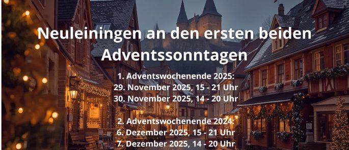 Weihnachtsmarkt in 67271 Neuleiningen Wann: 1. Adventswochenende 2024 Samstag, 30. November: 15:00 Uhr-21:00 Uhr Sonntag, 01. Dezember: 14:00 Uhr-20:00 Uhr 2. Adventswochenende 2024 Samstag, 07. Dezember: 15:00 Uhr-21:00 Uhr Sonntag, 08. Dezember: 14:00 Uhr-20:00 Uhr Stand 1. Ort: im kath. Gemeindesaal neben der St. Nikolauskirche, Stand 2. Ort: Garage des alten Pfarrhauses hinter der Nikolauskirche […]